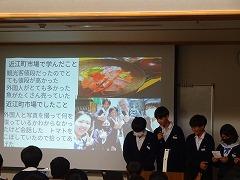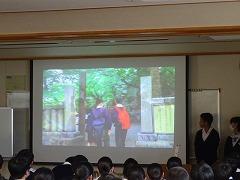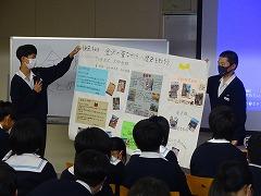 自主プランの実施にあたり、2年生プログラム委員会が決めた目標はATM(A:安全に、B:楽しく、M:学びのある)です。今日の発表会は各班の「学び」を披露する場となりました。発表は、プロモーション動画、スライド、スクラップブック、寸劇、ポスターと形態も工夫していました。発表の中では、「城下町の魅力を感じた」「古くからの伝統だけでなく、新しさを感じた」「バリアフリーや、外国の方も分かりやすい工夫が見られた」など発見したことが述べられました。「計画を立て、班員みんなで協力した」という感想も多く、発表会から充実した1日であることが伺えました。