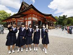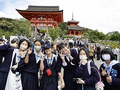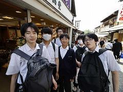 出発時の雨も滋賀県に入った頃には止み、好天の中、無事に京都班別自主プランが行われました。各班最初の見学地に近い二条城と金閣寺起点に散策を開始しました。2年次から調べ学習を進めた京都市内の史跡を地下鉄や市バス等を乗り継いで訪ねました。京都市内は連休明けのせいか、比較的空いておりスムーズに回ることもできたことと、班長のリーダーシップのおかげで、予定通りの時間に集合場所に到着しました。総合的な学習の時間では、1年次はかほく市、2年次は金沢と範囲を広げて伝統や文化について学んできた3年生です。京都の町は、どのように映ったでしょうか。保護者の皆さまにおいては、高松に戻ったら、ぜひ、お子様から話を聞いてください。