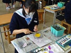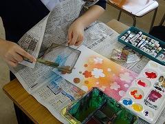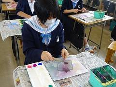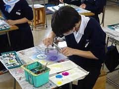 今日は、2年2組の美術科の授業のようすを載せます。「色の対比を考え、表現しよう」という課題で、生徒はスパッタリングという技法を用いて制作していました。この後は、学習した3つの技法をを生かした作品を創ります。完成した作品も、掲載します。
