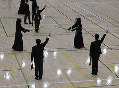 剣道部が「新化旗争奪全国中学校選抜剣道大会」に出場しました。3日(金・祝)は練成会(練習試合)が行われ、4日(土・祝)の大会に臨みました。大会では9県から12チームが参加し、2グループに分かれて予選リーグ、決勝トーナメントを行い覇を競いました。予選リーグでは、栃木県、愛知県、埼玉県、兵庫県、富山県のチームと対戦しました。午後からの決勝トーナメントで惜しくも敗れましたが、来月の加賀地区大会に向けて、県外の学校との対戦は刺激になったようです。本校剣道部顧問の下池先生が、監督の傍ら、審判も務めていました。