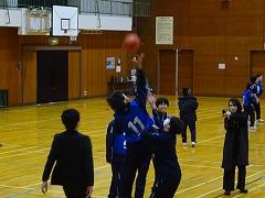 1年生の種目はバスケットボールです。保健体育委員会の進行のもと、各クラスがA・B・C3チームに分かれ、チームごとのリーグ戦を行い、クラスの総得点で競いました。優勝に輝いたのは男子が2組、女子が3組です。試合前から男女とも円陣を組み、気合を入れて試合に臨んでいました。女子はシュートの決定率が高いこと、男子はアグレッシブなプレーが多く見られたことが、球技大会を盛り上げました。今年度のクラス対抗の行事は最後になりますが、今日も、これまで積み上げてきた思い出の一つになりました。