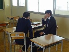 昨年度2学期より開始した、月に1度の「定期面談」を全学年で、今年も実施していきます。写真は4、5限の3年生の面談のようすです。学級担任または副担任とわずかな時間ですが、話をする場を設けています。話題は、新学期がスタートした今の気分や、部活動のこと、学習のこと、進路のこと、学校生活で気になっていることが中心だったようです。