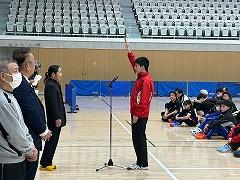 今春オープンしたばかりの「かほく市総合体育館」を会場に河北郡市卓球選手権が行われました。開会式では、キャプテンの 木下 悠介 さん(3の1)が選手宣誓を行いました。本大会は4人1組の団体戦で、小学生から高校、大学で活躍する現役選手、ベテランまで年齢の枠を超えて試合が行われます。卓球部の生徒は3年生と2年生が組んで5チームが大会に参加しました。自分たちでオーダーを考えたり、声援やアドバイスを送ったり頑張っていました。真新しく、明るい体育館でプレーできたことも、よい経験になりました。