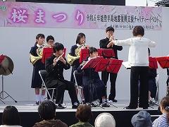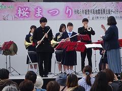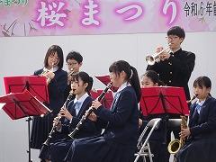 4月6日(土) 吹奏楽部が、かほく市「桜まつり」で演奏しました