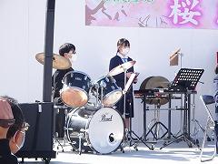 3年ぶりに開催された「桜まつり」において、吹奏楽部が演奏(4曲)を披露しました。朝から強い雨が降り、開催も心配されましたが、吹奏楽部が登場する頃には雲一つなく、空模様と同じ晴れやかな演奏でした。