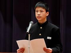 ( 1年生 → 1年生 )「この学年は元気と勢いがあって個性あふれる素晴らしい学年だと思います。来年からは後輩となっている場合ではなく新しい新入生のために良い先輩にならなければなりません。予期せぬ困難が現れても、みんなで乗り越え、いろんなことに挑戦していきましょう。」