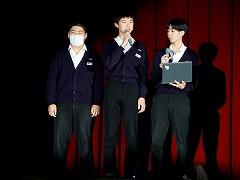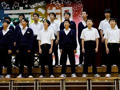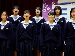 合唱コンクールの最優秀賞は、1年3組、2年1組、3年2組が受賞しました。2年1組と3年2組は、6日(月)に河北台中学校講堂で開催する河北郡市中学校音楽会に参加します。