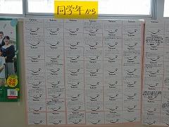 ( 1年生 → 1年生 )「この学年は元気と勢いがあって個性あふれる素晴らしい学年だと思います。来年からは後輩となっている場合ではなく新しい新入生のために良い先輩にならなければなりません。予期せぬ困難が現れても、みんなで乗り越え、いろんなことに挑戦していきましょう。」