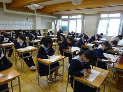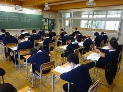 3年生の学力調査が行われ、真剣に取り組んでいました。今年度は進路決定の3年生、これまでより学校で受けるテストの回数は増えますが、その1つ1つを大切にしてください。今日は1限から順に社会、理科、英語の3科目で石川県内同一のものを、明日は国語、数学の2科目について、全国一斉の調査が行われます。
