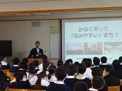 特に「住みやすさ」については、住みやすさランキングでは、昨年度、全国812市区中27位とのことで、この順位は「安心度」「利便度」「快適度」等の指標から算出されるとのことでした。平成20年の出生数(現在の中3生)が減少したことより、かほく市として知恵を出したことなど、データを用いて、分かりやすく教えていただきました。