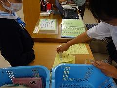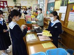 5月の図書委員会の取組として「春のブックスタンプラリー ~ジャンル別の本を借りよう編~」を実施しています。小説や歴史の本だけでなく、図書館に置かれている様々なジャンルの本を読んで、知識の幅を広げることを目的としています。借りる本の分類番号を見て、図書委員がスタンプを押していきます。全ジャンルの本を読んだ生徒は、玄関ホールで紹介されるとともに、図書委員お手製の「名言ティッシュ」などの景品が進呈されるそうです。この取組は今週いっぱい行われます。