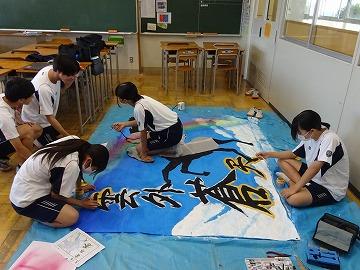 8月4日(金) 創作部が国民文化祭の「ウェルカム・アート」を制作しています。