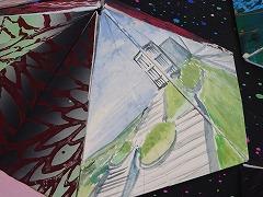「いしかわ百万石文化祭2023」のパンフレットにもある万華鏡をイメージし、加工したスチレンボードにかほく市の特産や風景を描いたり、美術科で学習したモダンテクニックを駆使したりして、立体的に制作しています。完成した「ウェルカム・アート」は、校舎内で展示した後、かほく市会場となる西田幾多郎哲学館に展示されます。もちろん、このホームページでも紹介します。