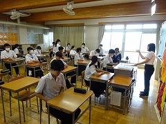 今日は2年生学年登校日でした。先週の職場体験を終えて登校した姿は、大きな役目を果たした充実感からか「清々しい」顔に見えました。今日は、事業所の方にお礼の手紙を書いたり、宿題点検をしたりして過ごしました。部活動を除いて、次の登校は2学期始業式の9月1日(火)になります。暑さが猛威を振るっていますが、体や心を休める時間をとって、始業式に顔が見られることを楽しみにしています。