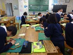 2年生の技術・家庭科の授業の様子を紹介します。両教科とも製作実習をしていました。技術科では、「鋳造」でキーホルダーの作成をしていました。「鋳造」とは、金属を溶かして型に流し込み、成形し製作する方法です。マンホールのふたやお寺の鐘などもこの製法で作られています。ちょうど、金属を流し込む作業をしている生徒もいました。家庭科では手縫いとミシンを使って「エコバッグ」を作成していました。真剣な表情で、糸を通したり、ミシンや生地に向き合ってたりしていました。どちらも完成が楽しみです。実際に手を動かし製作し、モノづくりの苦労を知ると、身の回りのモノを大切に扱えますね。