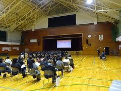 午後より、3年生とその保護者を対象に「進路説明会」が行われました。来年度の入学試験の概要が明らかになった、例年この時期に開催しています。本日もご多用の中、説明会に多数お集まりいただき、ありがとうございました。生徒にとっては、未知の体験で大きさは違いますが、みんな不安な気持ちを持って過ごしていると思います。進路選択については、正しい情報を得て、お子様と一緒に決めていただきたいと思います。不明な点がありましたら、早めに学級担任、進路担当に相談してください。本日、都合等で出席できなかった保護者の方々には、お子様を通じて資料を配付します。