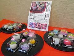 12月に、この欄でも紹介した2年生の美術科の授業で制作した「四季を表す創作和菓子」のうち12作品が商品化され、高松地区内の2店舗で販売が開始されました。店頭で販売されると同時に、店舗内では、生徒が樹脂粘土で作った作品も展示させていただいています。よろしければ、お買い求めください。
