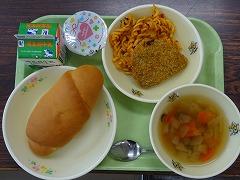 2月14日の今日は「バレンタイン給食」でした。今日のメニューは、カボチャひき肉フライ、フジッリのツナトマトソース、ペイザンヌスープ、チョコプリン、塩バターロール、牛乳です。ハート型のチョコプリンだけでなく、スープに入ったニンジン、ダイコンもハート型にカットされていました。給食センターの方々には、いつも温かい給食だけでなく、気持ちも温かくしていただいています。ありがとうございます。