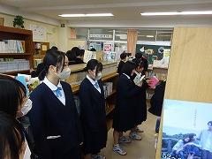「メロスは激怒した。必ず、かの邪知暴虐の王を除かなければならぬと決意した。」2年生国語科で学習した「走れメロス」の冒頭の文章です。今日の授業では、図書館で惹きつけらる書き出しのある小説を探しました。授業の最初に、学校図書館司書の澤野さんが、魅力のある書き出しで始まる小説を朗読し、イメージを深めました。続いて「読みたくなる部門」と情景が鮮明に浮かんでくるような「テクニカル部門」の2つに分けて、小説を探しました。