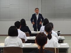 結団式では、油野 和一郎 市長より「期待と不安もあるだろうが、ドイツの文化・自然、ホストファミリーの温かさに触れ、今後の成長の糧にしてほしい」と激励がありました。激励に応えて本校から参加する 寺内 智生 さん(3の3)は「経験したことを伝えたい」、川端 紗奈 さん(2の2)は「たくさんの経験をして将来に生かす」、赤﨑 心優菜 さん(2の1)は「周りを見て行動する」と抱負を述べました。