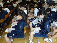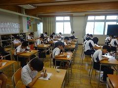 2学期も木曜日の朝学習・朝読書の時間に小テストを行います。2学期は社会からスタートしました。1学期同様に、全員が満点を目標にできる出題としています。左の写真はテスト前の2年2組です。テストに備えて、しっかり学習をしていました。なお、2学期もは毎回の小テストで、継続した頑張りが見られた生徒を表彰する機会を設けています。