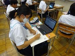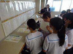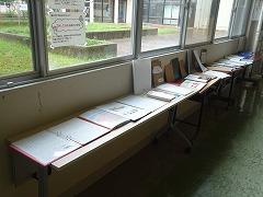 夏休みに頑張った成果物が、校内に展示されています。1年生教室横廊下には、「図書館を使って調べるコンクール」の作品が並べられています。新紙幣が発行されたことや地震をテーマに調べた作品が多かったです。自分でテーマを見つけて、自ら追究していく学習は、大学入試でも実施されています。ぜひ、友達の作品の良いところを見つけてください。