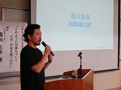 淺川 氏 は、プロデューサーとしての仕事内容と自身の経験から「価値をお金で測りたがるが、仕事の中身、自分の価値観で見ることが大切、自分が心震えて没頭できる何かを見つけることが一番」とお話されました。続いて「どうやったらお金が稼げるか」というワークショップに取り組みました。「稼げるか」というテーマでしたが、そもそもお金とは何か、どのようにお金を使うかが大切ということを考えさせられました。