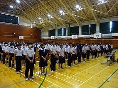 この日を持ちまして、本校3年生の夏季大会・コンクールが終了しました。2年半の部活動、地域クラブでの活動お疲れさまでした。2学期は運動会、合唱コンクールの大きな行事があります。部活動等で学んだことを学校行事や、進路選択に役立ててください。保護者の皆様におかれましては、本校部活動へのご理解とご協力をいただき、ありがとうございました。