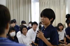 兼島 さんは「誇りある『自分』へ」というタイトルで、「中学校の英語の授業の経験をきっかけに、自分を誇りに思えることが、人生を楽しく生きる上で必要なことと考え、自分にとっては挑戦することが誇れる自分になれる」ことを、山本 さんは「時代を紡ぐ民謡の響き」というタイトルで、「民謡の謡い手としての経験から、謡い手と聴き手が繋がることで、過去に生きた人と現在を生きる人を紡ぐことに民謡の伝統という価値に気付き、皆がそれぞれの方法で伝統を次の世代に引き継いでほしい」ことを主張しました。訴えました。山本 さんは最優秀賞を、兼島 さんは優秀賞を獲得し、ともに、8月31日(日)に、金沢市で開催される県大会に出場が決定しました。堂々の発表でした。おめでとうございます。