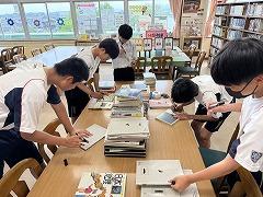 学校図書館前に笹が飾られ、生徒の皆さんの願いが書かれた短冊が吊るされています。図書館司書の 澤野先生 と 図書館ボランティア の方が、季節に合った掲示を作り来館を待っておられます。梅雨どきということもあり「雨を表す言葉」の掲示がありました。初級レベルの「梅雨、秋雨」から上級レベルの「天泣(てんきゅう)、飛雨(ひう)」までの言葉が紹介され、紙をめくると「どんな雨か」分かるようになっています。ほかにも、図書委員のおすすめ本の紹介 や ジャンル別に多く貸し出しされている本の紹介など仕掛けがいっぱいです。もうすぐ始まる夏休みに向けて「読んでみたい本」を探しに図書館に寄ってみましょう。