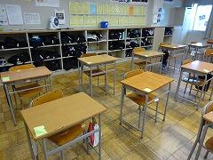 なお、一番最後の教室の机の写真(写真下段中)を見ると、どの机も右上に「黄色い付箋紙」が貼ってあります。この付箋紙は、1年生学年プロ委企画「全員発言モリモリ大作戦」の挙手や発表回数を記録するためのものです。授業も行事もがんばっている1年生です。