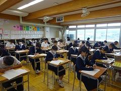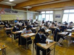 また、今日は2学期中間テストが行われました。(写真下段)「読書」「スポーツ」「食欲」だけでなく、「勉強の秋」という言葉もあります。最近、気温も低くなり過ごしやすい季節となりました。中間テストの結果を踏まえて、ぜひ、学習にも取り組みましょう。テストの振り返りでは、各教科の点数だけでなく、テスト範囲全体を見渡して、限られた時間の有効な使い方について考えることもしてください。