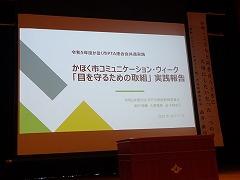 今日は 本校の金子PTA副会長(家庭教育担当)がステージ上で実践報告をされました。また、お忙しい中、地区委員の方々を中心に会場に足を運んでくださいました。日頃からの本校のPTA活動にご理解とご協力をいただきありがとうございます。