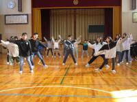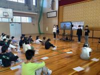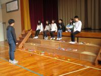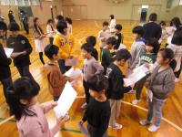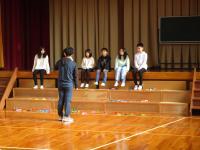 昼休みに体育館で、学習発表会の振り返りをしていました。