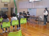 今日、1年生が正院小学校に行って、国語科と体育科の交流学習を行いました。