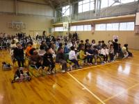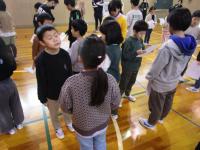 今日は全校児童で、5,6年生の指導を受けて「たこストレッチ」の体験会を行いました。