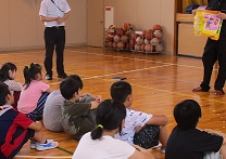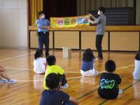 7月9日(木),珠洲警察署生活安全課の岡田主任,蛸島駐在所の東出様をお迎えし,防犯教室が行われました。警察の方から,「いかのおすし」と「子ども100当番の家」について説明をして頂きました。そして,不審者に腕をつかまれた場合の対処法について指導をして頂きました。