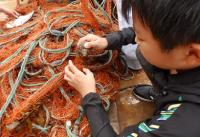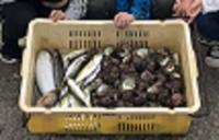 前日仕掛けてもらっていたサザエ網を上げ、網にかかったサザエ等を外す体験をしました。