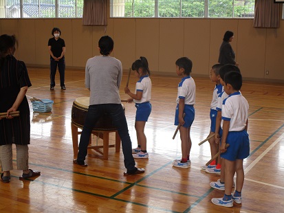 9月29日(火)、地域の太鼓指導者、室谷様、田中様をお招きし、キリコ太鼓教室を開催しました。今年は、新型コロナウィルス禍のため、地域のお祭りが実施できなかったので、今回が1回目の太鼓教室となりました。子ども達は11月の学習発表会に向けて、低学年は「小バイのリズムを覚えること」、高学年は「演技としての、見せるキリコ太鼓」を目指し、練習に励みました。
