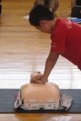 授業参観の後は、珠洲消防署の職員の方をお招きし、体育館でAED・心肺蘇生法講習会を行いました。6年生と保護者・職員が参加しました。