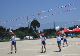 パレードが終わった後は、運動会が行われ、紅白対抗の競技が繰り広げられました。大変暑い日になりましたが、児童は朝からのパレード・運動会をやりきった充実感でいっぱいのようでした。