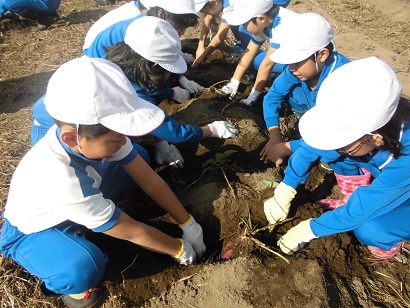 10月22日(月)2限に5月に願いを込めて植えたサツマイモをいよいよ掘り起こしました。