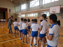 10月16日(金)には,プロバスケットボールチーム「金沢武士団」の選手2名を迎え,スポーツ教室が開かれました。ドリブルやシュートの仕方を教えていただいたり,一緒にゲームをしたりして楽しい時間を過ごしました。