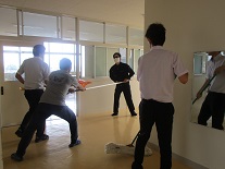 その後警察の方による防犯教室を実施しました。DVDを見ながら勉強したり、不審者から背後から抱き着かれたときにすばやくを逃げる方法を教わり、実践したりしました。