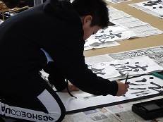 今日から3学期が始まり、始業式の後に書初め大会を行いました。