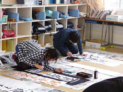 始業式に続いて、書き初め大会が行われました。1・2年生は硬筆、3~6年生は毛筆です。