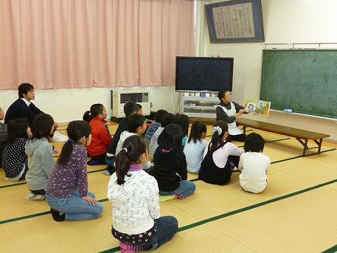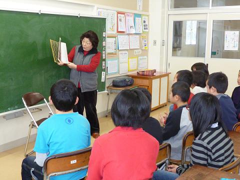 毎月23日は「いしかわ学校読書の日」です。本校では今年度、県の読書活動推進モデル校として様々な取り組みを行っています。そのひとつの図書館だよりは各種おたよりページにてご覧ください。今月は本校職員と地域の読み聞かせボランティアグループの「どんぐり」さんによる読み聞かせを行いました。
