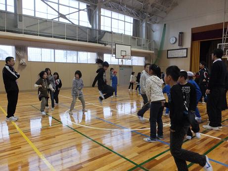 今日から体力アッププランが始まっています。本校では、1月18日(金)~2月6日(水)の間の火曜・木曜日の長休みに「8の字とび」に取り組みます。体育館は寒いけど、みんなで運動すると楽しいですね。