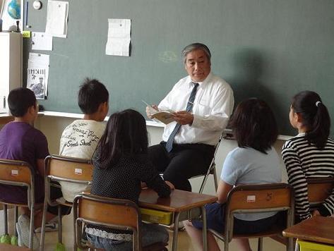 今日は読書の朝です。読み聞かせグループの「たんぽぽ」さんに来ていただきました。