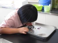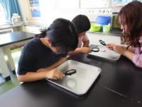 理科室をのぞいてみると、5年生が虫眼鏡を片手に、現場検証のように、何かをのぞき込んでいました(笑)。